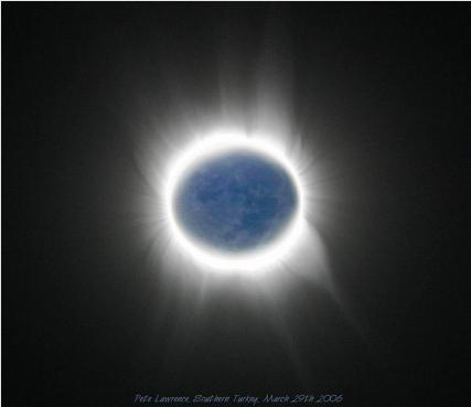 One is a shot of the usual "Black Disc", and the other is a shot of the Moon, a beautiful blue, clearly showing lunar features. I assume the photographer believes that the Blue Moon shot was taken through the black disc, as both feature a perfect eclipse. My theory says that no light can pass through the polarizing filter. I initially thought that the photo was a composite, or fake. I attempted to find out from the photographer but received no reply.