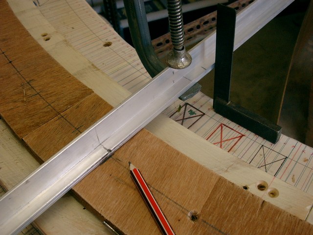 The next layer of plywood is clamped onto the steel with silicone, and allowed to set.