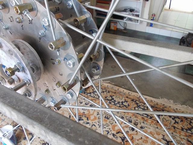 The Spoke Wheel installed in the machine. Total weight of the rotating assembly is about 50Kg. The electronic