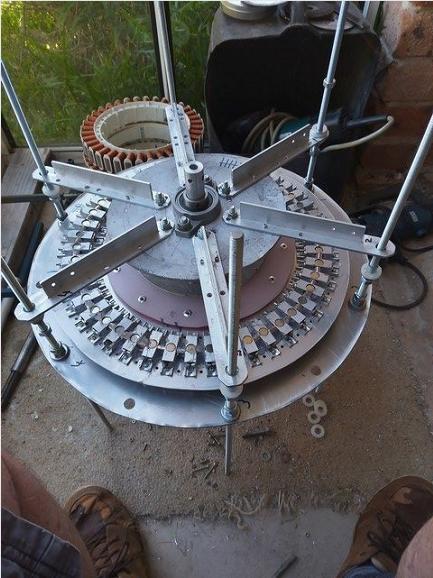 The magnets should be able to be extended to a double row Halbach array. Perhaps the 80 arrays close together in alternating blocks may be worth trying. This could use my stock of N35 cylinder magnets. I doubt there will be any sucsess until the magnets are changed to N52 cube type.