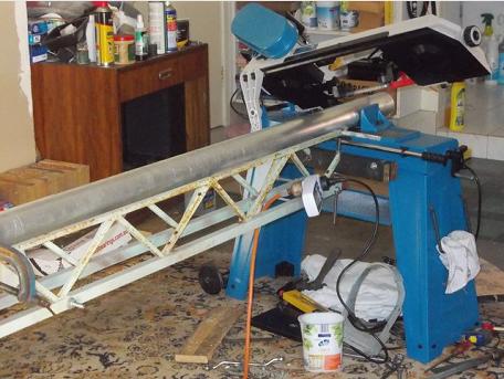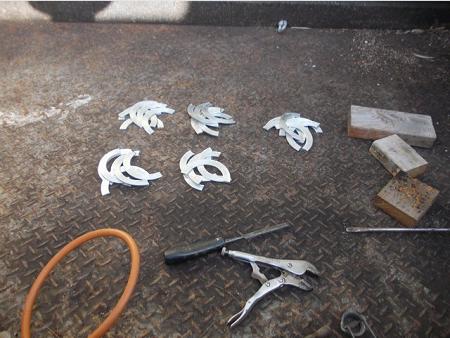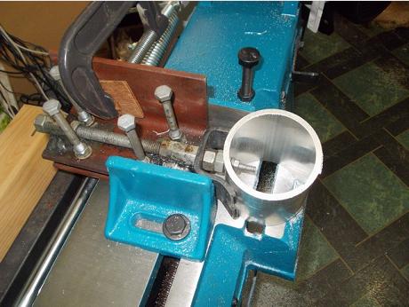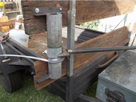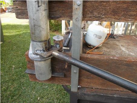 Gadget for bending 16mm x 3mm alum flat bar into semi circles for coil housings.