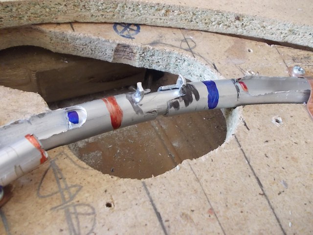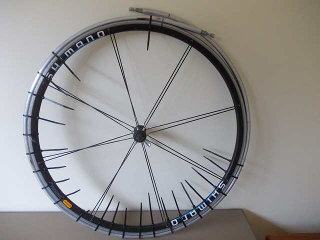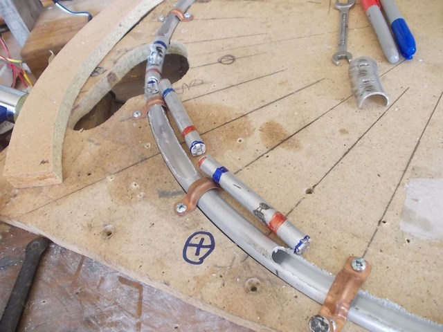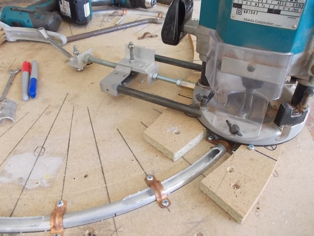 Rotor Number 2 was made by forming dry sand filled 16mm annealed alum tube around a bike wheel. Weight approx 1kg.