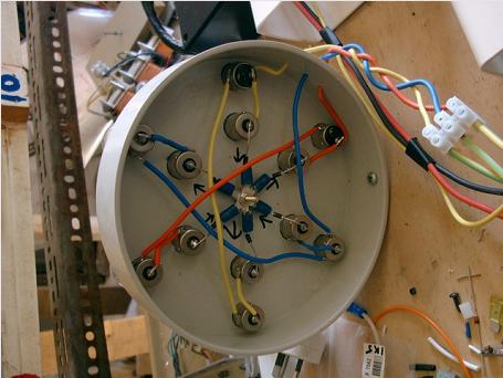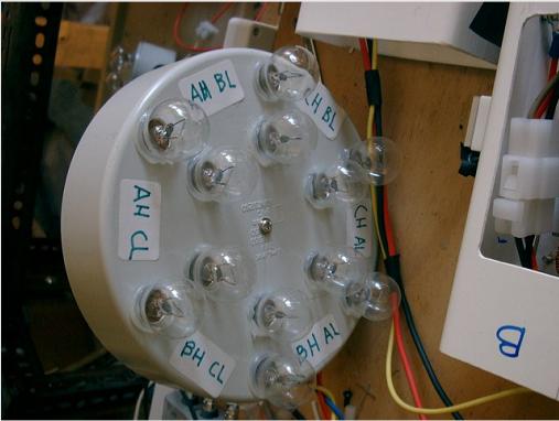 The small board with 7 LEDs is to check and adjust the motor timing low voltage control section. The 6 steps for switching are marked on the rotor, and as the rotor is moved a pair of lights will illuminate for each step. 1 orange for High Side and 1 red for Low Side. The green is to show the PWM voltage/current level.